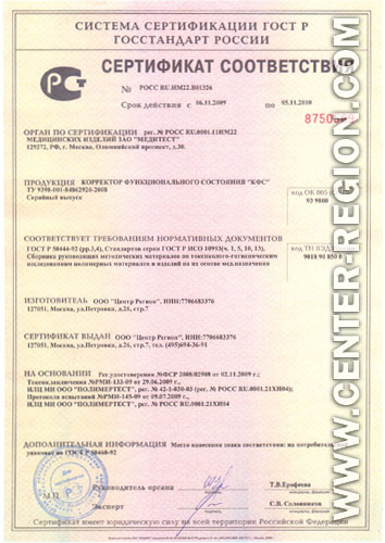 КФС прошли сертификационные испытания и получили соответствующие документы Минздравсоцразвития РФ.